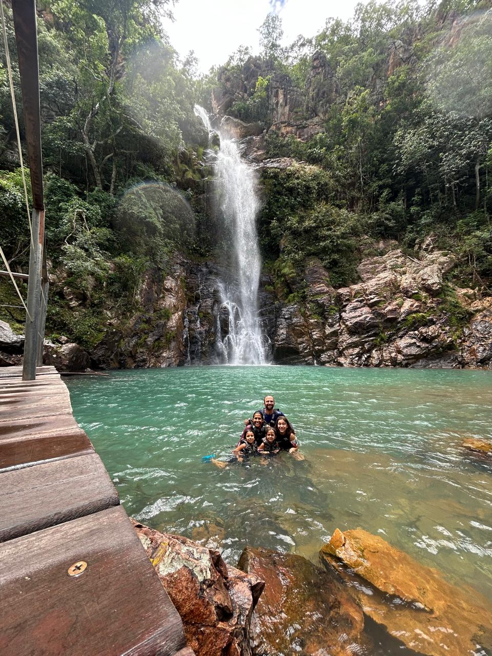 O passeio consiste em 700m de trilha, sendo uma escadaria com 470 degraus. A cachoeira possui uma queda de 40m de altura, flutuação e banho com 6 metros de profundidade junto a diversos peixes em águas cristalinas. Na volta, há a opção de descida por tirolesa, com uma paisagem de tirar o fôlego, com 59 m de altura e 700m de extensão. Duração média 1 hora de banho. Atrativo turístico situado a 25Km da Vila Bom Jardim. Idade permitida: Acima de 5 anos.