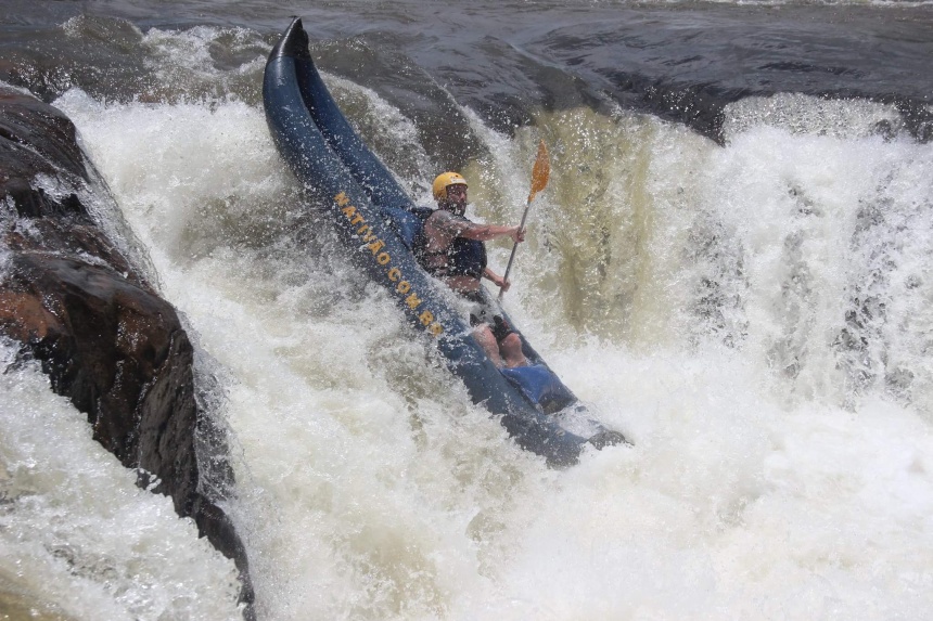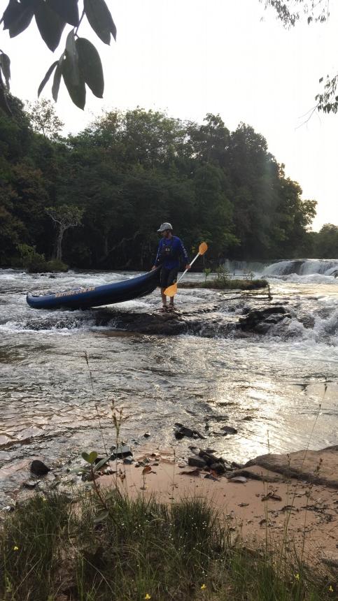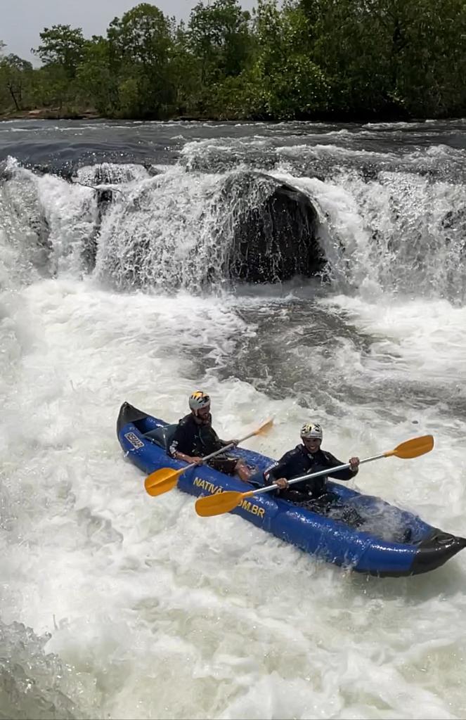 Descida no rio Tenente Amaral, desbravando corredeiras em caiaque inflável.